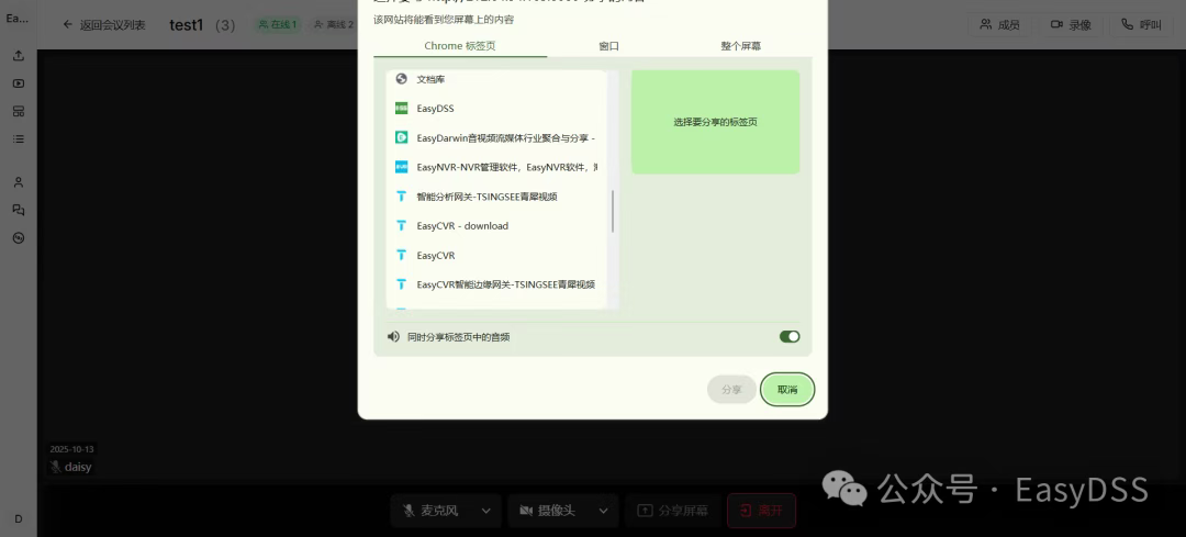 一键发起会议,省去繁琐准备:项目负责人无需提前协调平台、通知参会人,在EasyDSS后台从“用户库”勾选成员即可发起视频会议,参会人登录账号就能接入,大型项目沟通也能轻松应对。