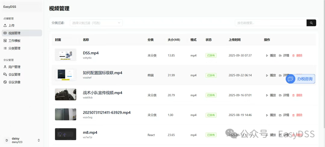 新版EasyDSS的“会议录像保存”功能,帮企业解决信息留存难题:会议开启后,选择录制全程内容,结束后直接存入“会议录像”,未参会同事登录账号,就能随时回看会议录像。
