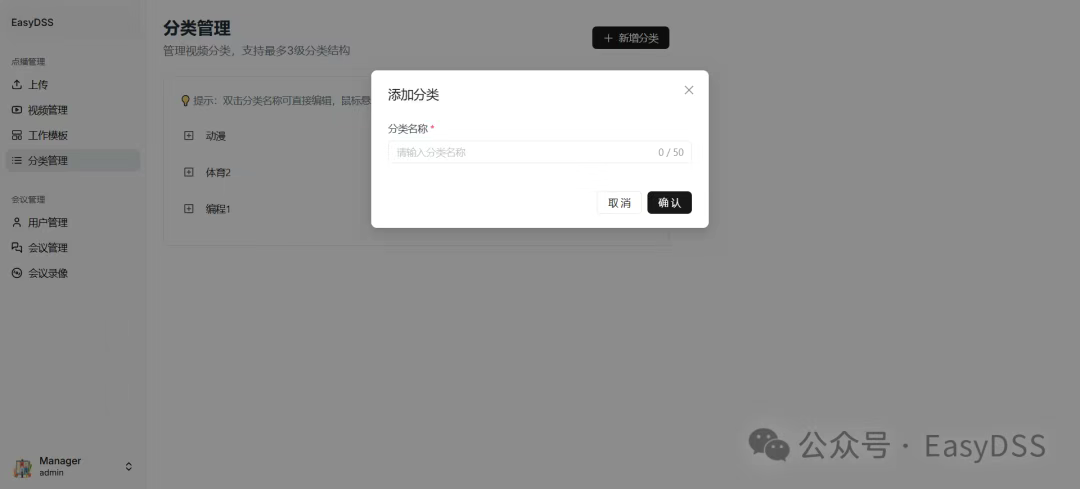 现在,这些烦恼都将成为过去!新版EasyDSS流媒体平台重磅升级,打破单一功能局限,全新整合“直播+视频会议+点播存储”三大核心能力,打造一站式音视频解决方案,让企业协作、教育培训、赛事直播等场景实现“一平台全搞定”!