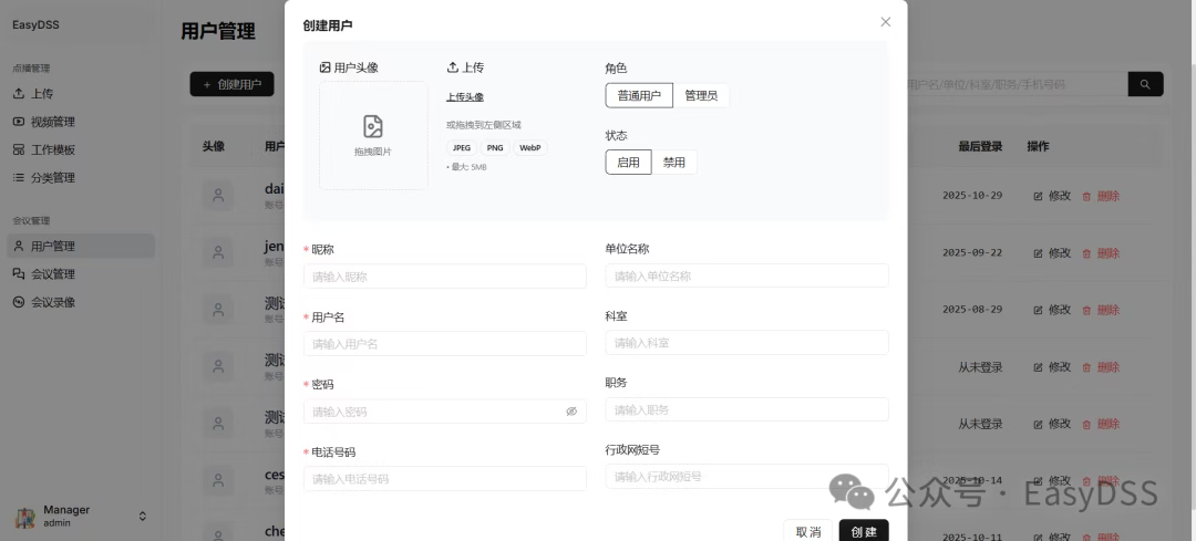 无需再维护N套独立系统,新版EasyDSS将直播推流、多方会议、视频点播、内容存储全部集成!无论是内部协作、外部推广还是资源沉淀,一个平台就能完成从“实时互动”到“内容复用”的全链路闭环,操作成本直降70%。