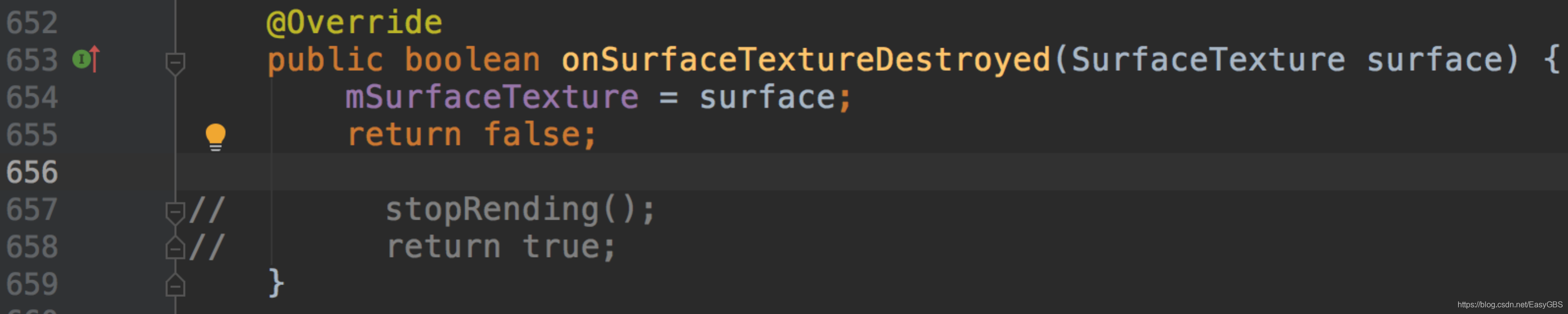Android播放视频返回后台,再重新回到播放界面,发现TextureView显示视图是一片黑色,是因为播放界面返回后台时会调用onSurfaceTextureDestroyed方法去销毁SurfaceView(华为平板熄屏后也会调用),再到播放界面需要重新创建SurfaceView并初始化EasyPlayerClient,这样会耗费很长时间。