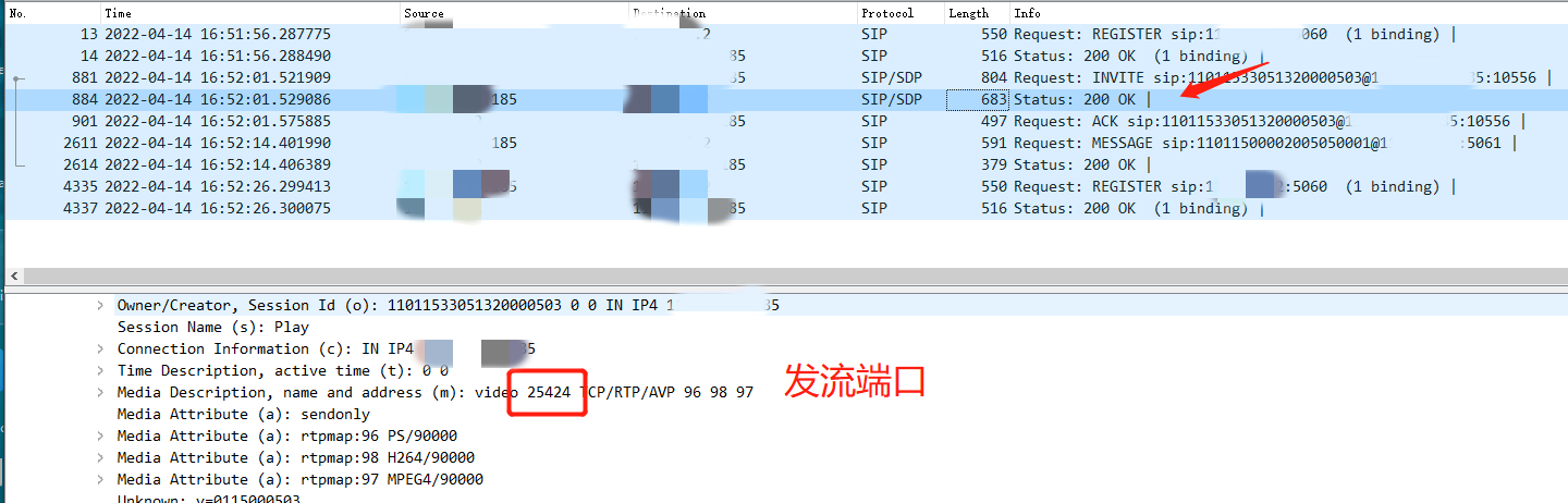 可通过修改代码,在请求到SDP数据后,将端口保存到stream信息中,并将本次回复的发流端口号,修改成SDP数据中的端口号: