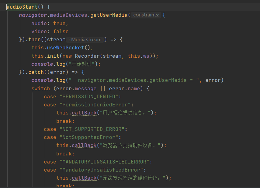 首先找到对应对讲时间代码,经排查发现打开麦克风的api无效,修改对应的打开麦克风的api。