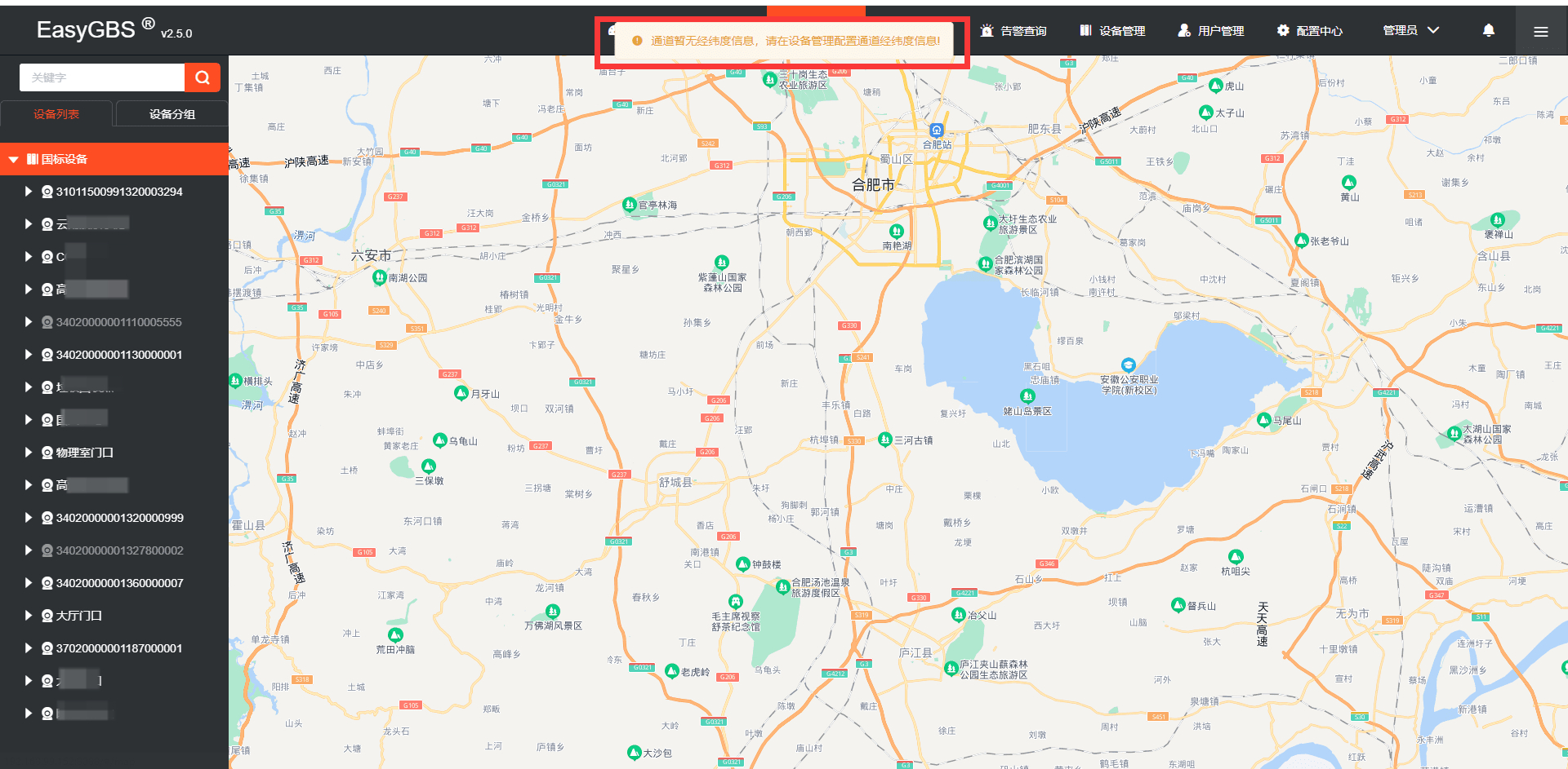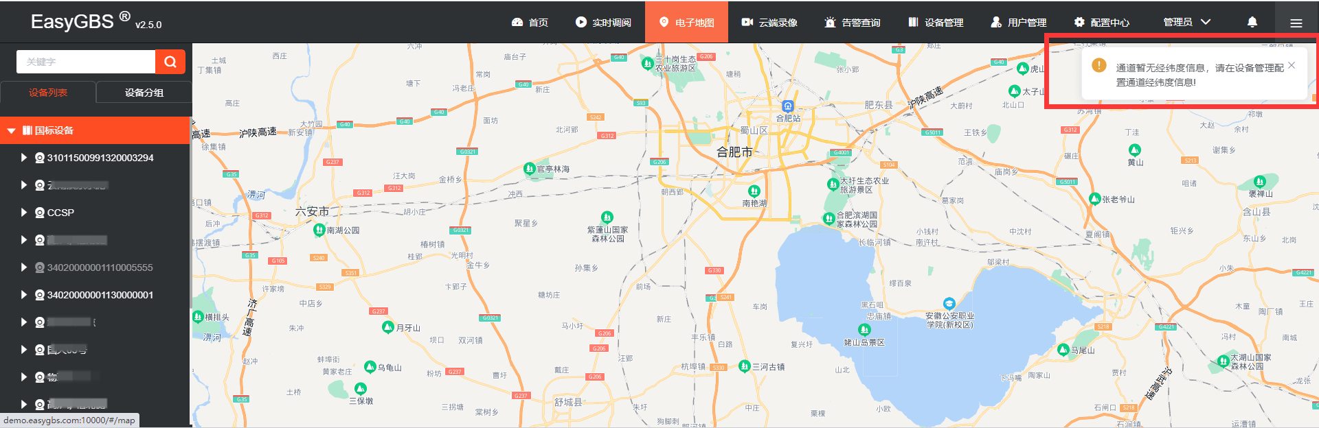 有用户反馈,在EasyGBS项目中,大部分弹框消息处于居中且弹框持续时间过长,影响用户体验。例如,在电子地图模块未选择通道时,弹框会占据主菜单栏导致用户无法进行后续操作,如下图: