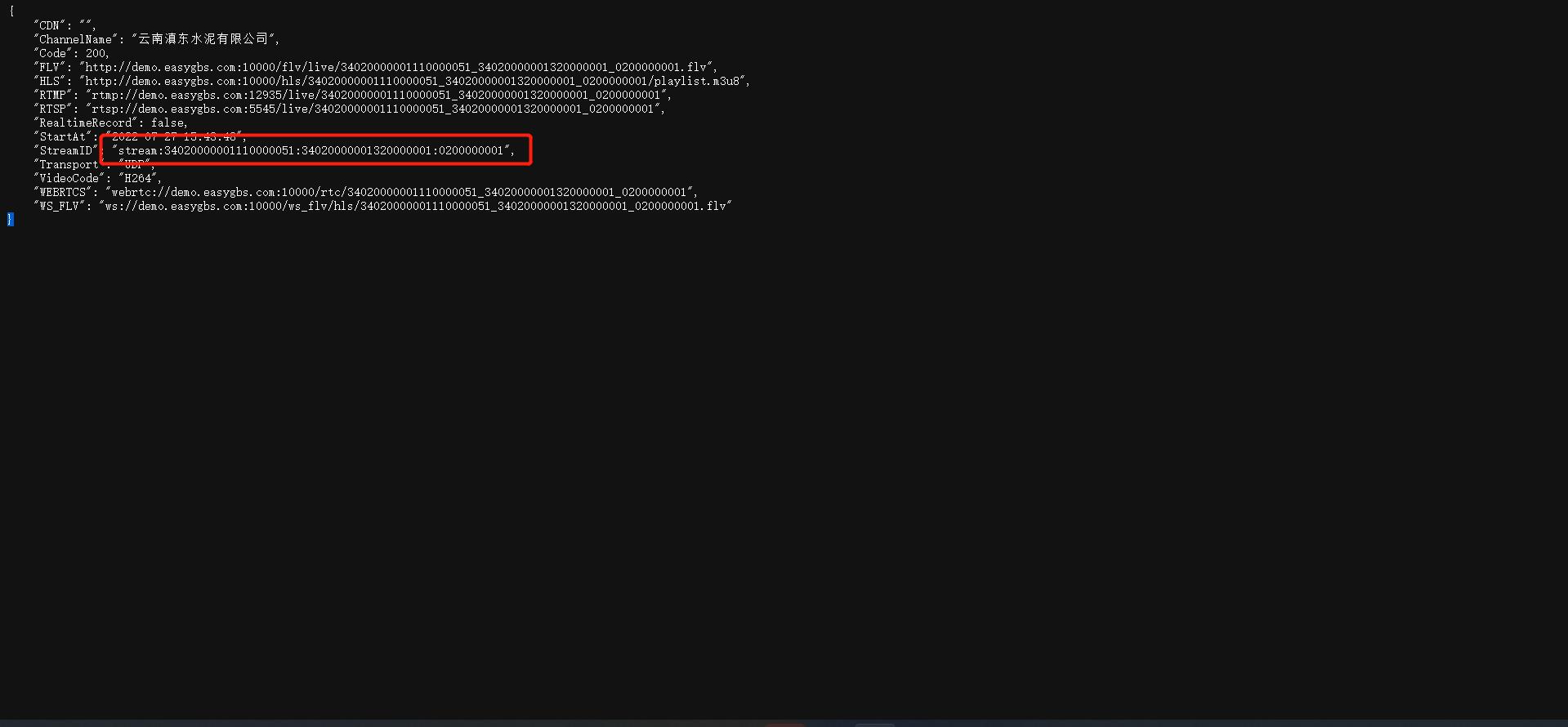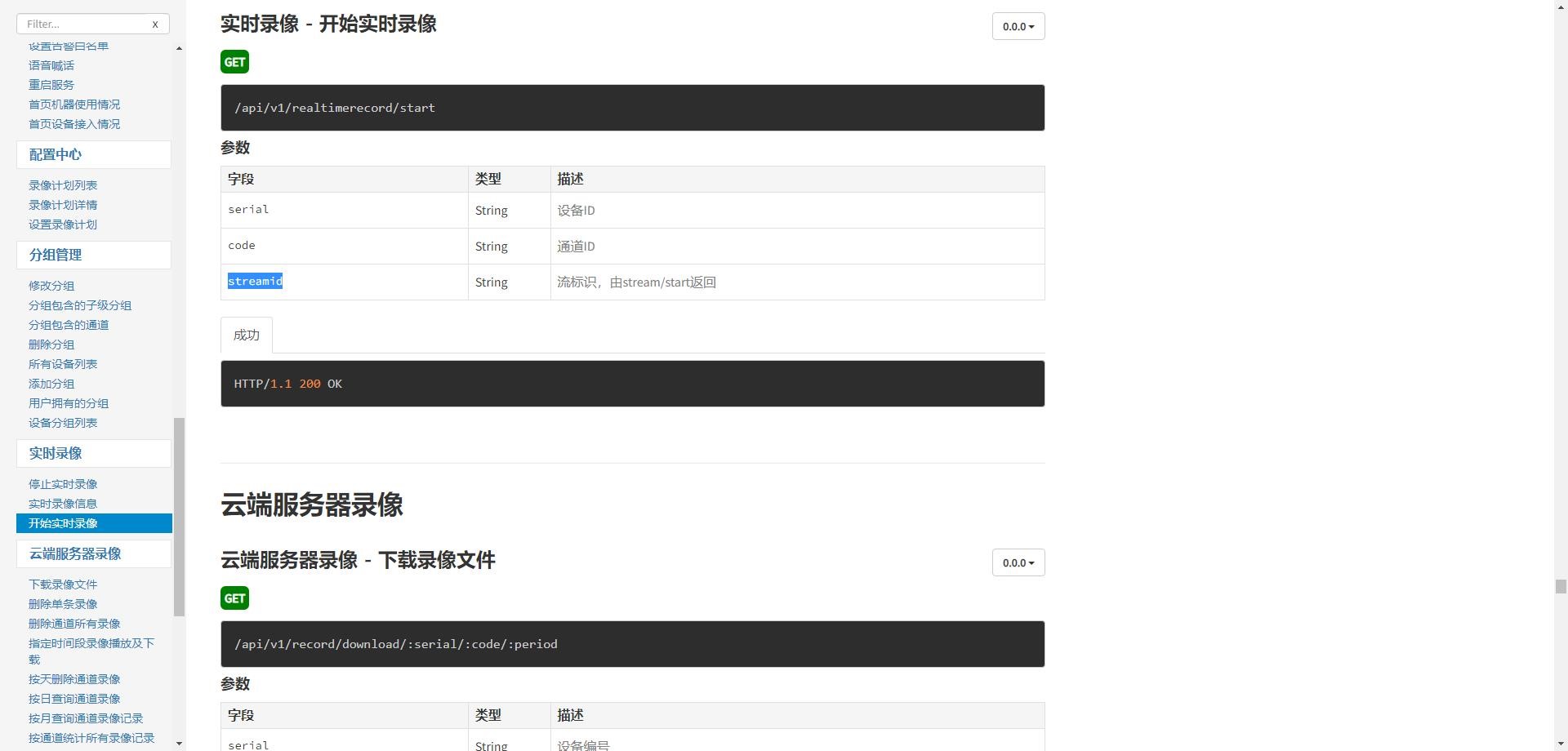 1)首先,在调阅实时录像接口前,先调阅开始直播的接口来获取stream id,如下图: