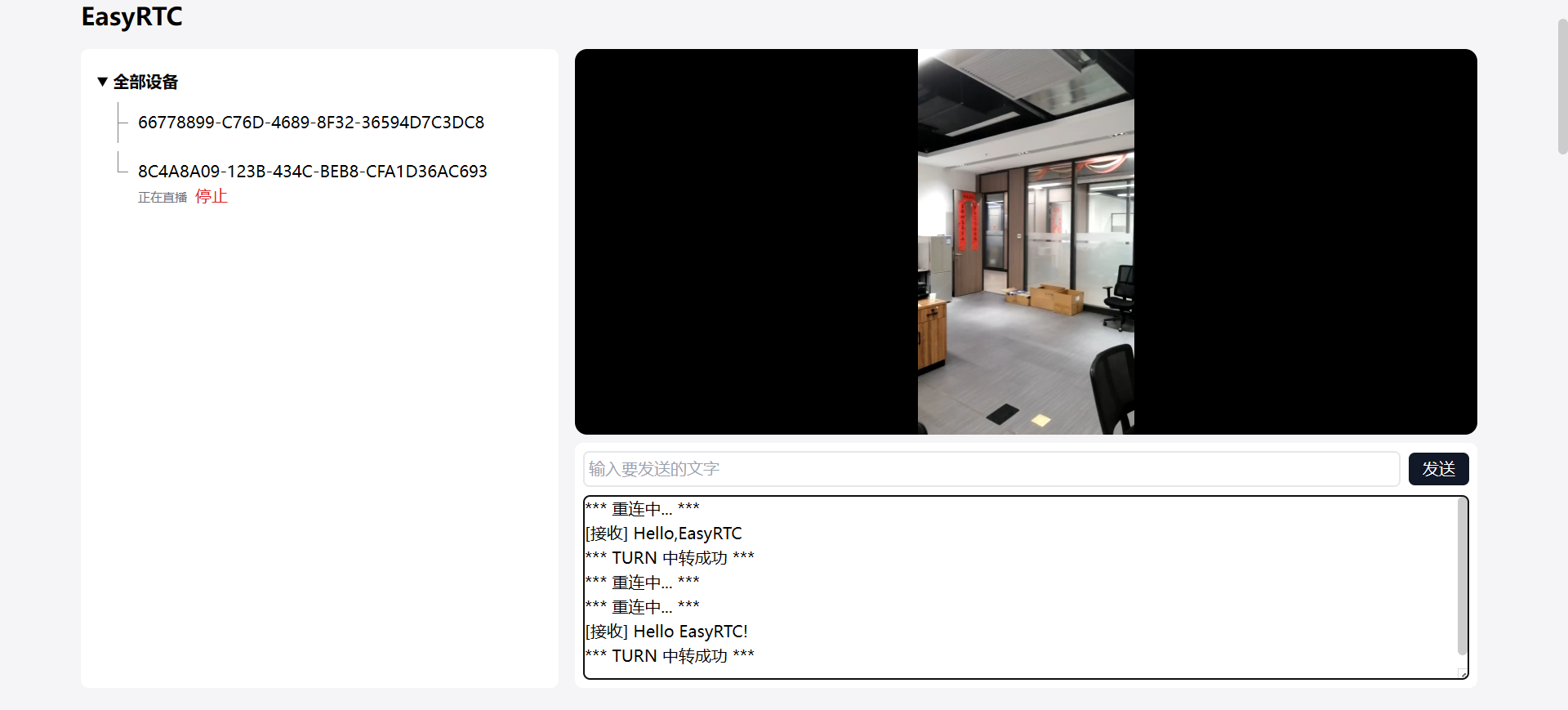 - 混合传输模式:在P2P连接失败时,自动切换至基于WebSocket的中继模式,确保通信稳定性。