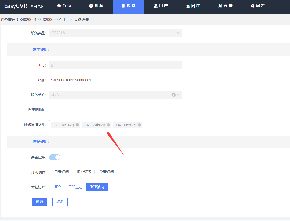 由于客户现场比较远,没办法手动在NVR上面操作。更新了EasyCVR 3.7.0版本后,用户可以在后台进行通道筛选,将告警和语音通道给筛选掉,后这些通道就会离线了,不占用授权路数。