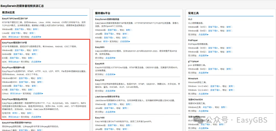 要是还没装EasyPlayer,直接去官方网站下就行,地址是www.easydarwin.com。不管你想在电脑上直接用(Windows、Linux系统都有对应版本),还是想嵌到自己的网页里用(有Web版本,还能自己改改做二次开发),都能找到合适的版本。