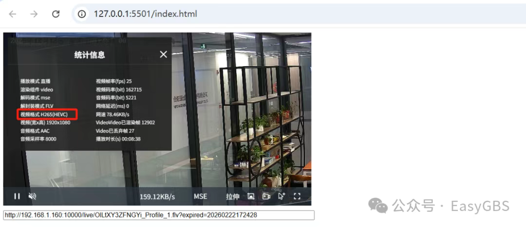 熟悉视频技术的朋友可能知道,FLV是一种常见的流媒体封装格式,而H.265(也叫 HEVC)是当下主流的视频编码标准,压缩效率比老款的H.264高不少,同样清晰度下能省更多带宽,所以现在很多用户会用EasyGBS转发H.265编码的FLV流。