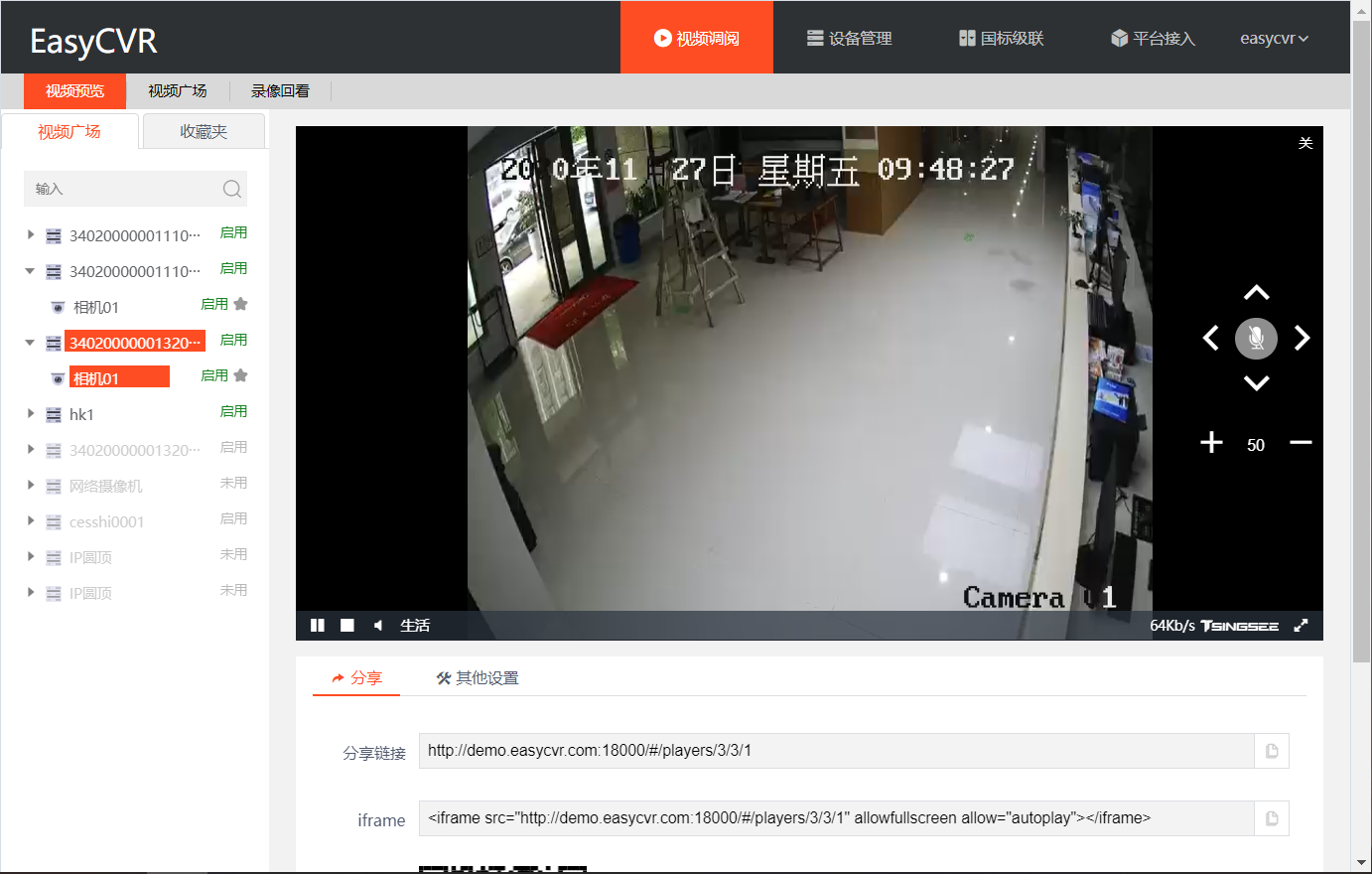 1、实时高清视频直播,覆盖全终端:支持高清视频的实时传输和多终端观看,包括PC端、手机端、微信端和电子大屏。支持PTZ云台控制。