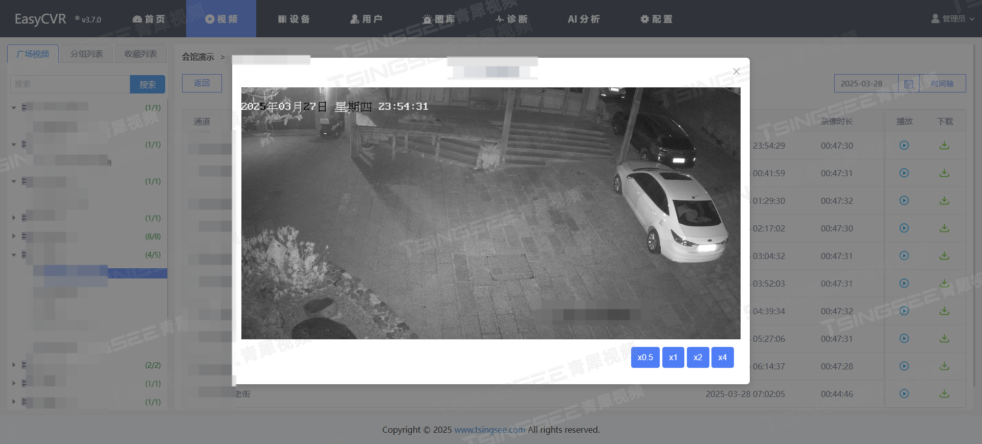 2)多屏播放:EasyCVR视频分析设备平台能同时播放多路监控视频流,视频画面1、4、9、16个可选,支持全屏展示,方便用户监管到更多的现场。