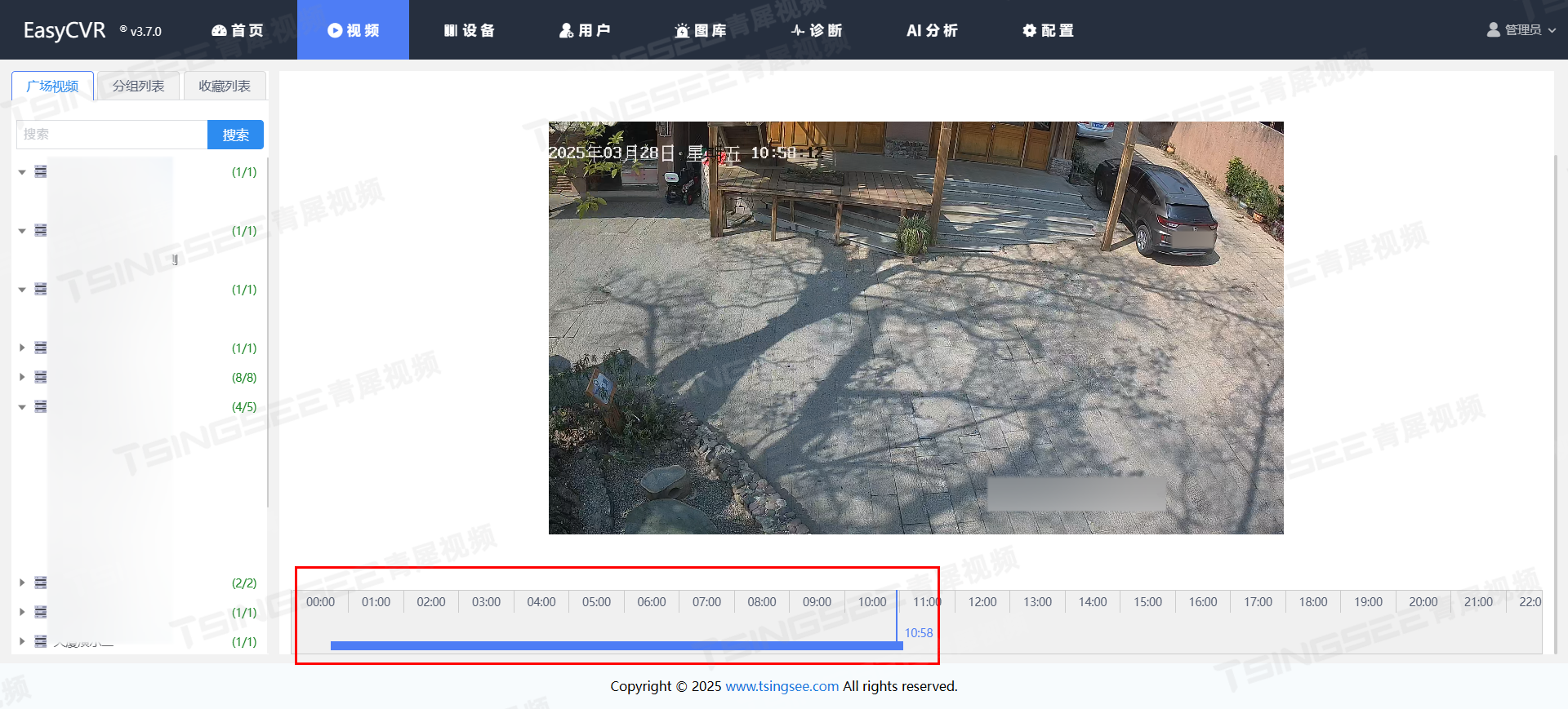 3)录像回看:支持时间轴精准检索与历史录像回放功能,用户可通过拖动时间轴快速定位关键时间节点,实现对历史事件的精准回溯,高效满足事后复盘与追溯需求。