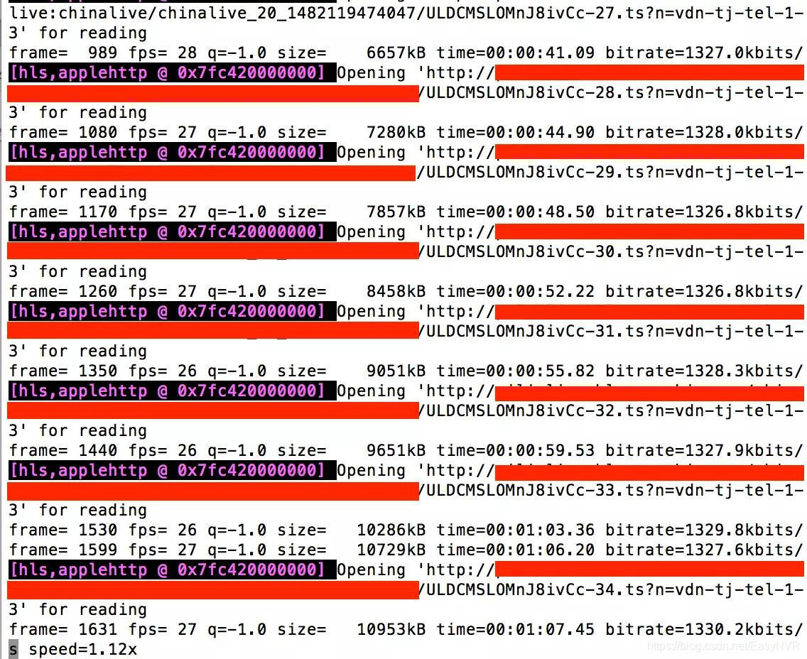 通过使用ffmpeg命令将直播视频流实时保存至本地,从而可以监测到当前直播视频流的状态。在终端运行
