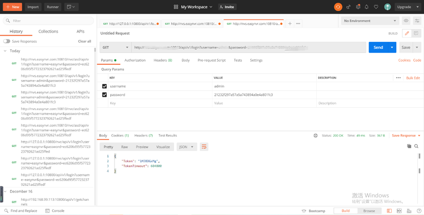 2)在通过EasyNVS调用EasyNVR接口之前,需要先调用EasyNVS的登录接口,如下图所示: