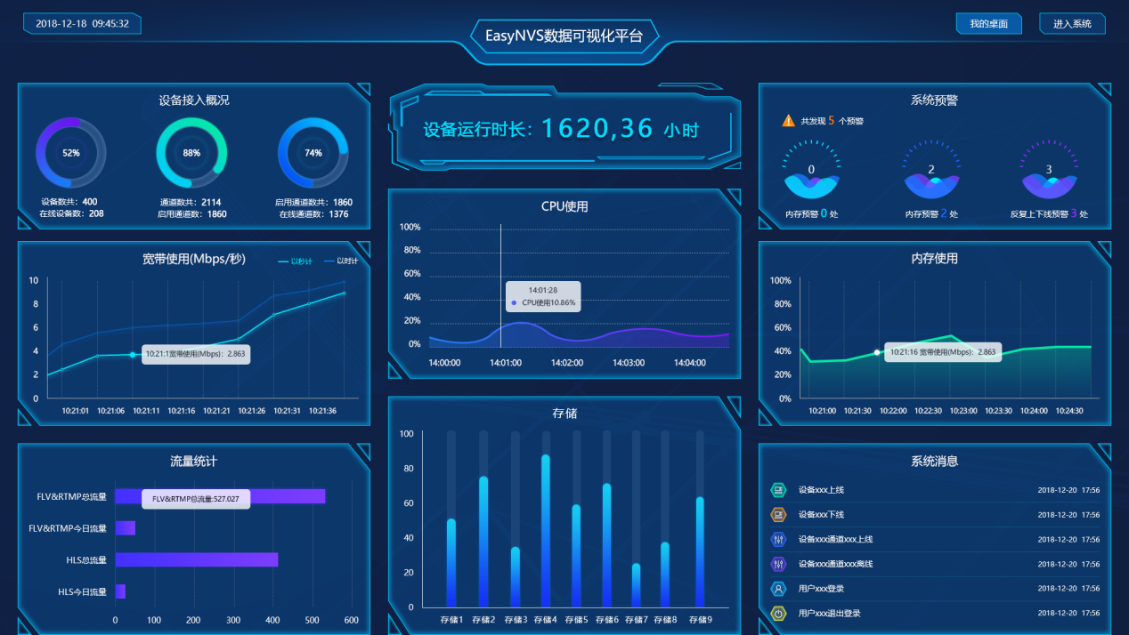 EasyNVS云管理平台是EasyNVR的管理平台,可以远程控制与管理多台EasyNVR,它可以将分布在不同区域和网络环境下的多套EasyNVR设备,进行统一的接口登记和管理,借助云端宽带资源解决单路设备在云直播中多路分发观看所需的上行宽带问题,以及分布式存储在云端的回放问题。