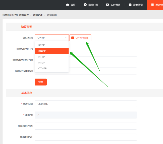 我们在排查时,远程发现用户的设备网络和EasyNVR网络已经互通,查看平台配置时看到,用户在勾选Onvif协议时,并未将前面的选择项也同步选中,导致探测失败。我们同步选择Onvif及IP后,设备已经探测成功。