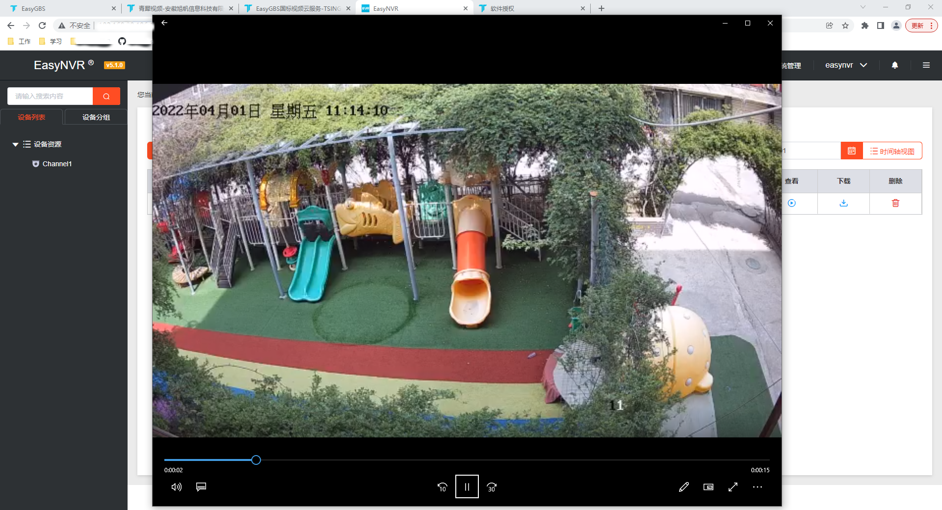 有用户反馈新版本EasyNVR(EasyNVR-linux-v5.1.0-22032218)设置云端录像后,平台正常生成录像文件,也可正常观看,但通过调用接口则提示404报错,同时web页面下载找不到文件。