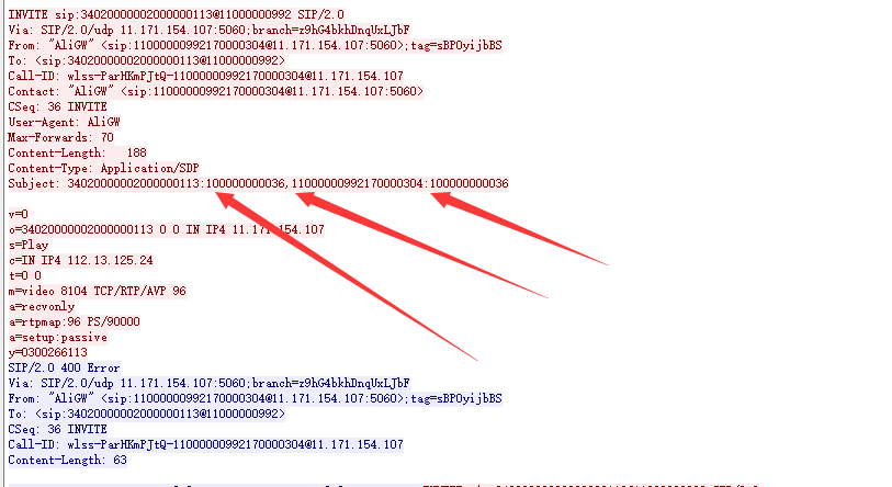 通过抓包显示,上级平台在发送invite的过程中对下级发送的编码存在问题。对比标准的国标协议我们可以看到,在首位的编码为1时,调取的是下级平台的录像,当为0时调取的是直播页面,也就是当前所需要的页面。但上级点击播放发送的invite首位却是1,因此导致出现不能播放的情况。