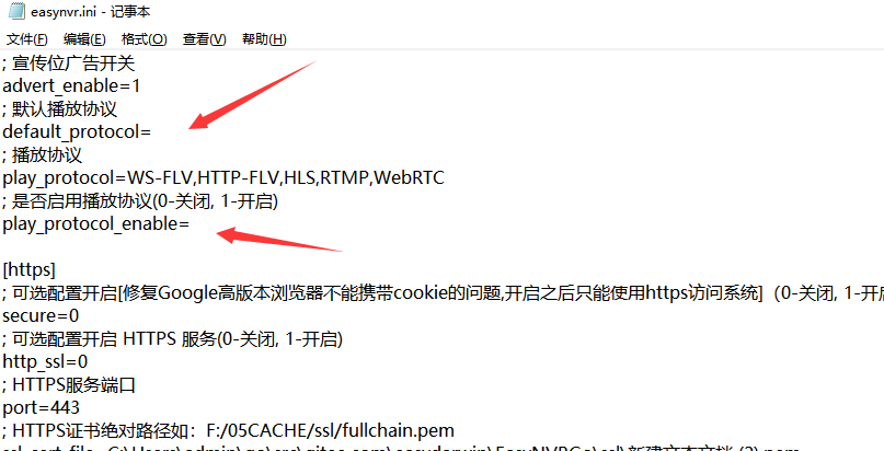 技术人员进入到用户服务器查看到,在easynvr.ini里,文件的配置参数确实有被修改,如图,这两个地方被用户修改过:
