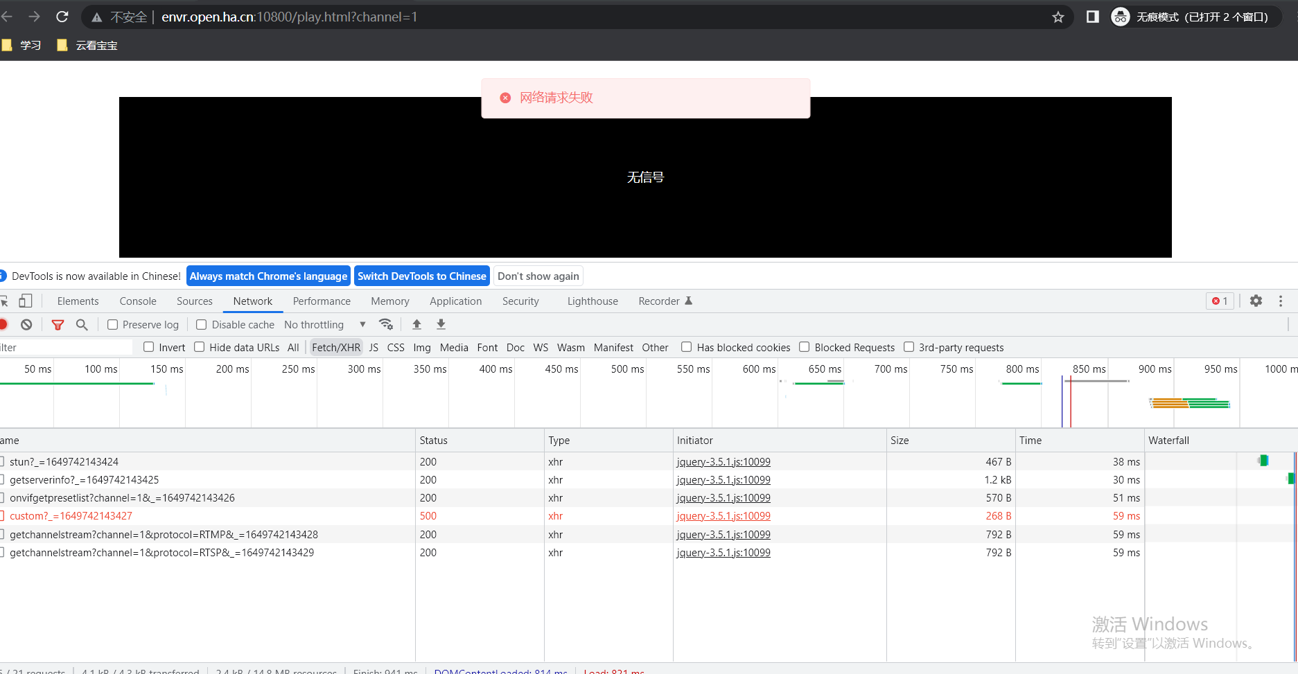 从上图可以看到,是由于custom接口的报错,才会导致这个现象。EasyNVR的这个接口一般都是配置文件被修改后,才会出现上述的这种问题。