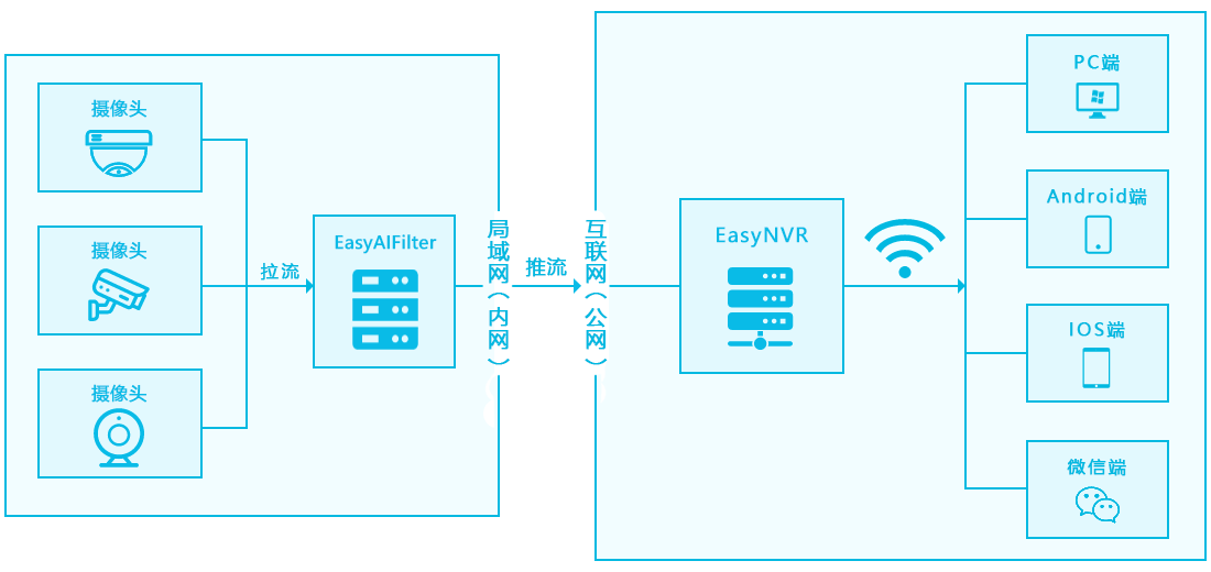 EasyNVR是基于RTSP/Onvif协议接入的视频平台,可支持将接入的视频流进行全平台、全终端分发,包括RTSP、RTMP、HTTP-FLV、WS-FLV、HLS、WebRTC等。平台部署轻快、兼容性高、可拓展性强,功能丰富灵活,具备视频监控实时直播、视频分发、录像、检索与回放、云存储、级联等能力。