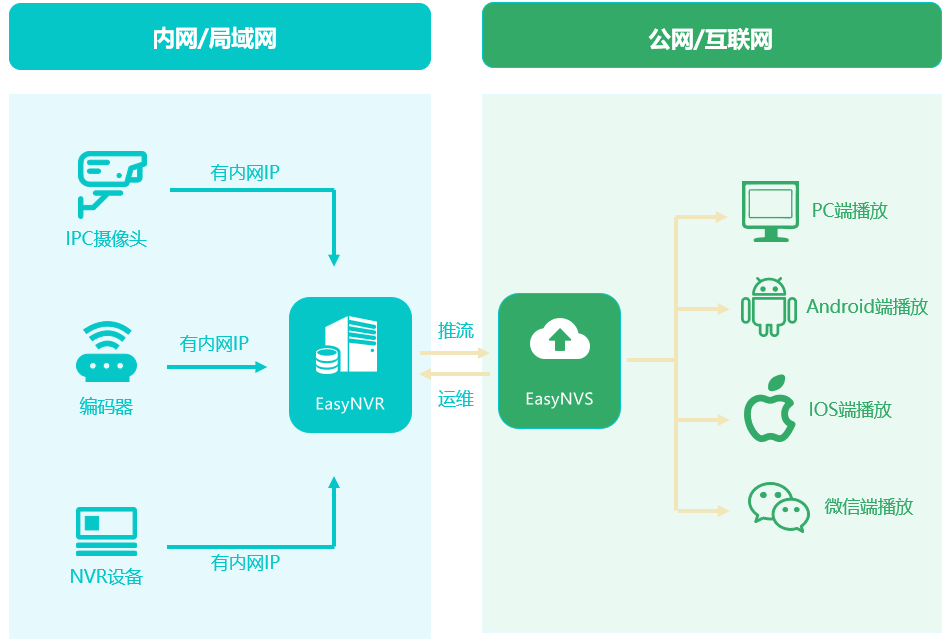EasyNVS管理平台具备汇聚与管理EasyGBS、EasyNVR等平台的能力,可以将接入的视频资源实现统一的视频能力输出,并能进行远程可视化运维等管理功能,还能解决设备现场没有固定公网IP却需要在公网直播的需求。