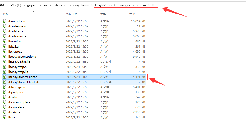 3)找到EasyNVR目录下的 libEasyStreamClient.a文件,替换为最新版本的libEasyStreamClient.a库即可。