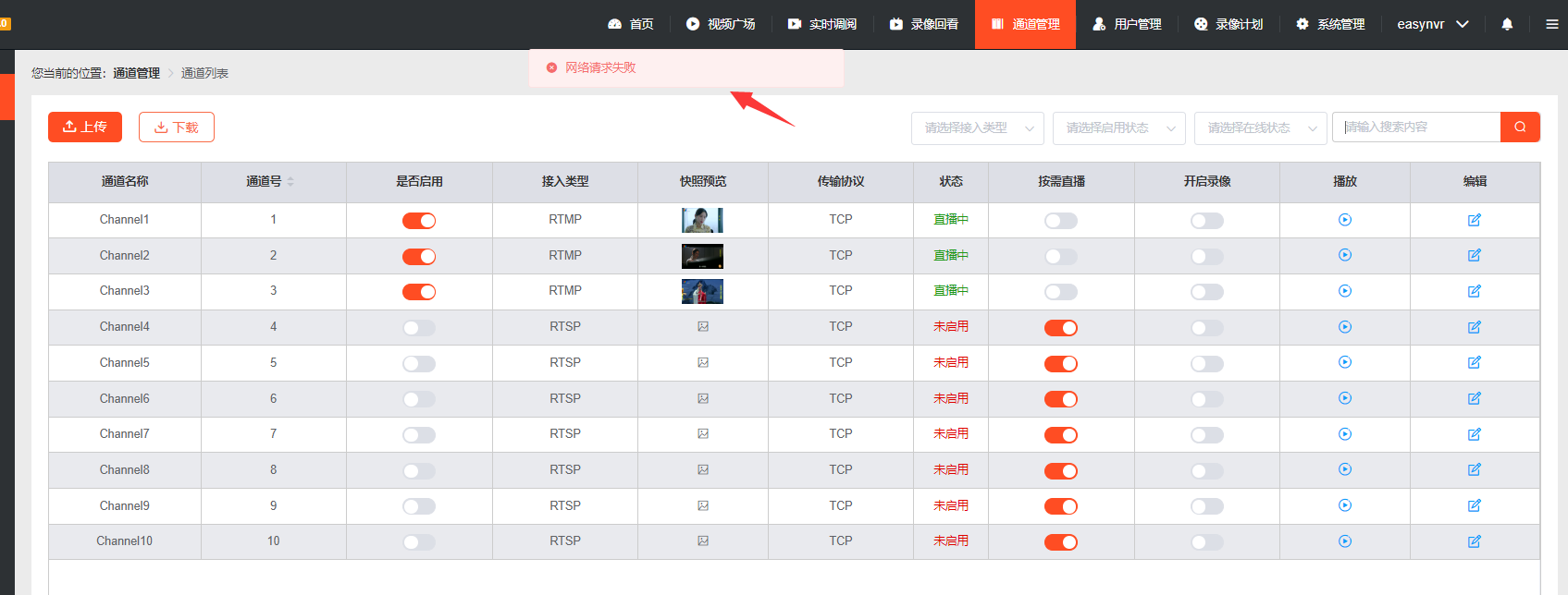 EasyNVR安防视频云服务平台的特点是基于RTSP/Onvif协议将前端设备统一接入,在平台进行转码、直播、处理及分发,在安防监控场景中,EasyNVR可实现实时监控、云端录像、云存储、告警、级联等视频能力,极大满足行业的视频监控需求。