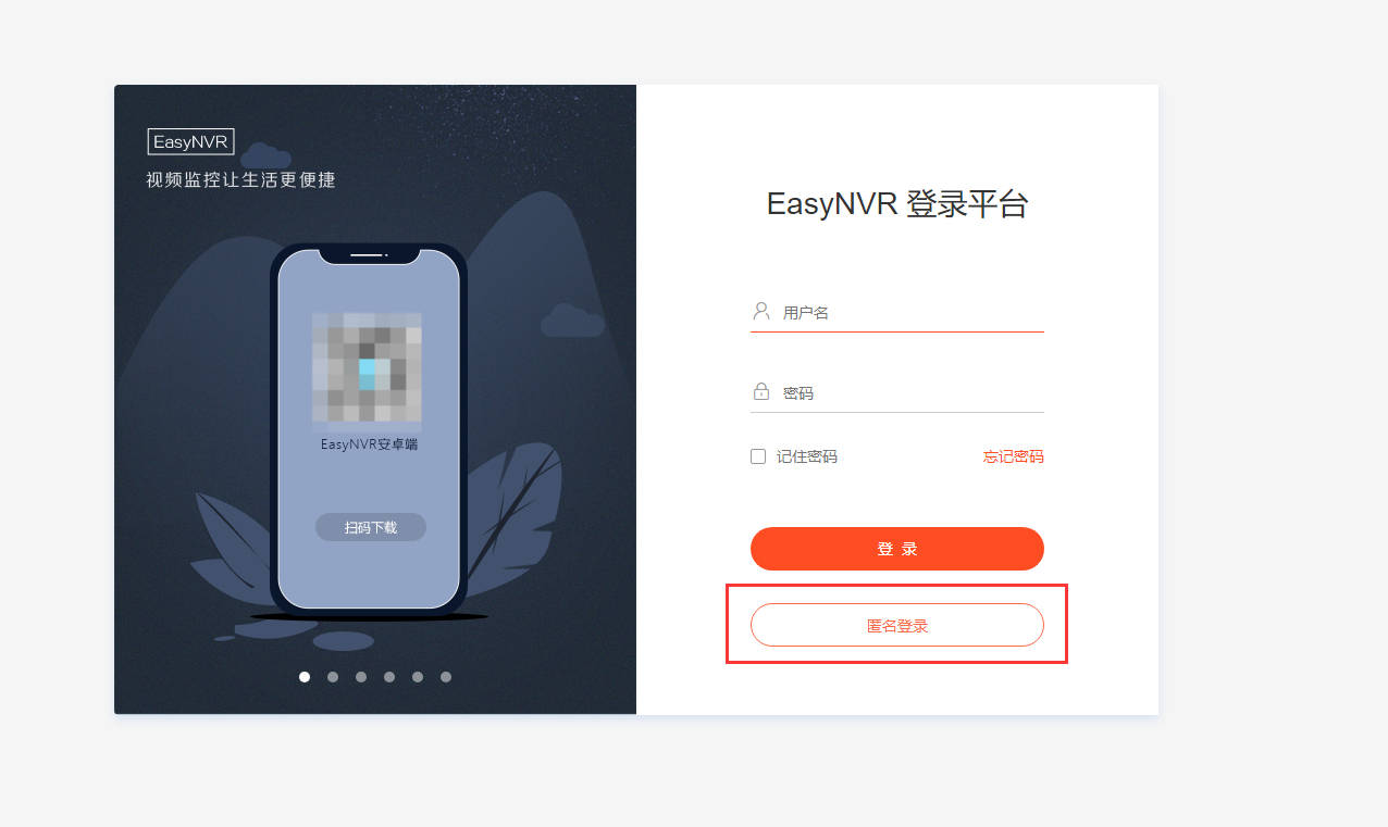 我们在此前的文章中介绍过关于EasyNVR的匿名登录功能,匿名登录情况下,用户可以直接登录平台,并且匿名登录模式屏蔽了部分功能,只提供视频直播和录像回看。