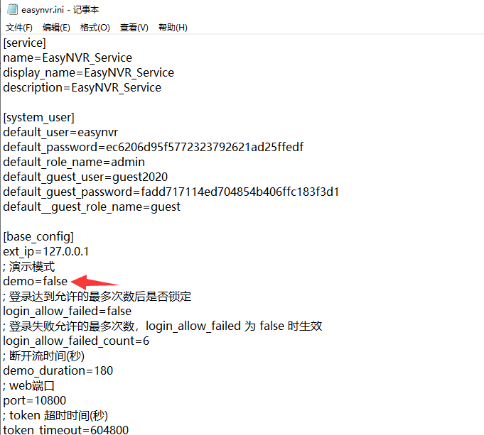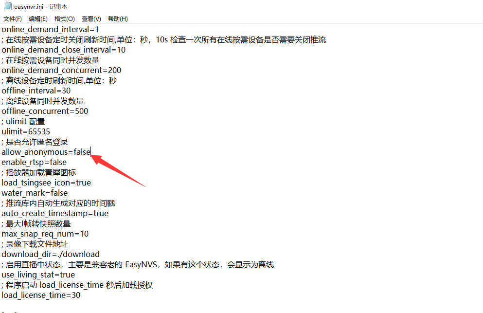 1)修改配置文件easynvr.ini的相关配置参数,如下图: