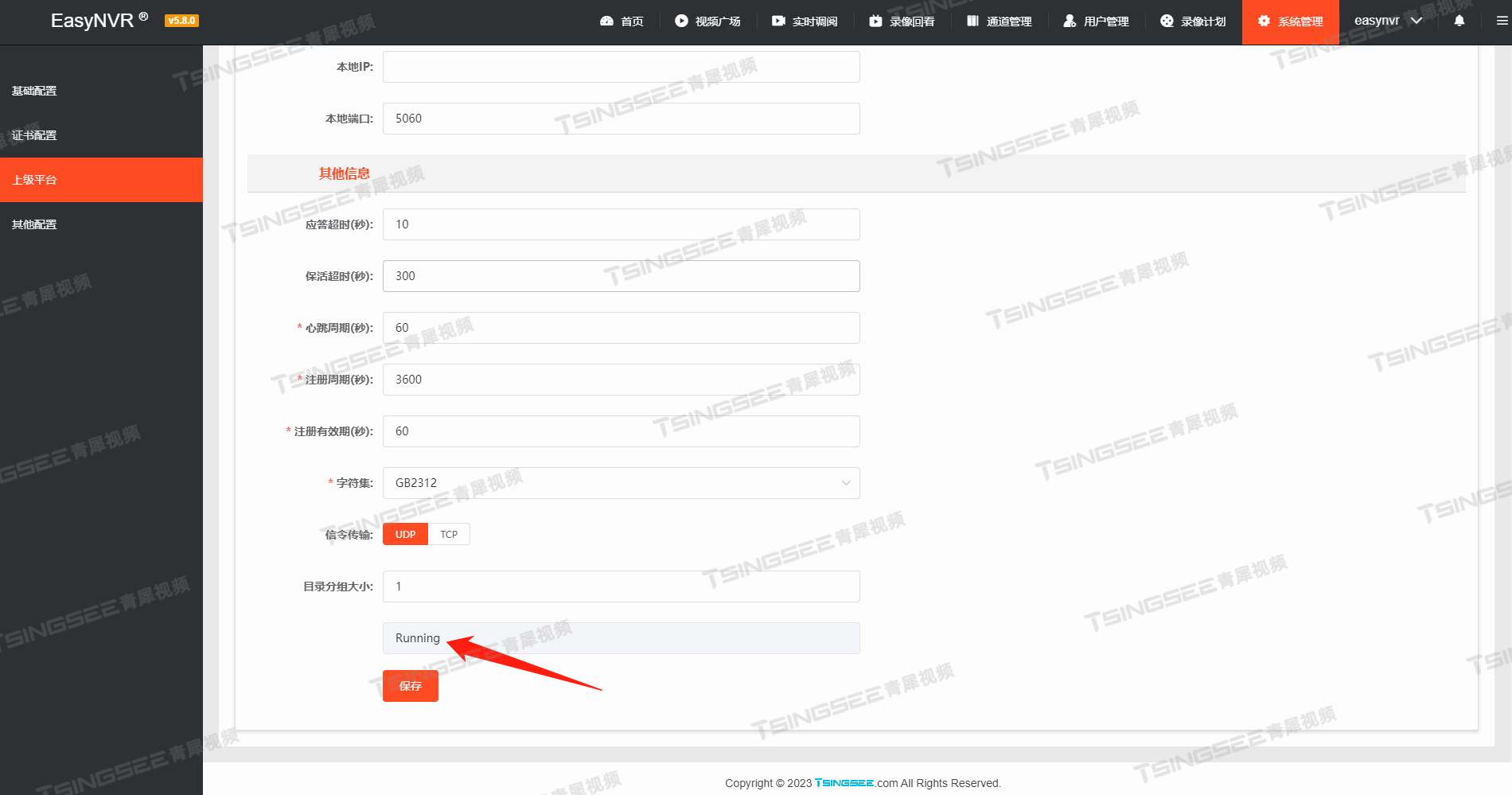 4)级联成功后的上级平台显示(以EasyCVR为例):