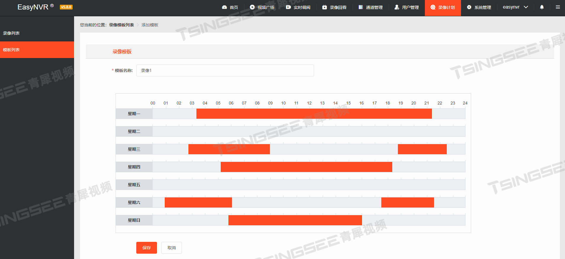 其实这个只是平台软件打包时默认的三种录像计划,我们的安防视频监控平台EasyNVR平台还可自定义配置不同时间或日期的录像计划,具体操作如下: