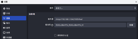 2、进入OBS,点击【设置】-【直播】,服务选择自定义,输入推流地址,密钥填入推流码;