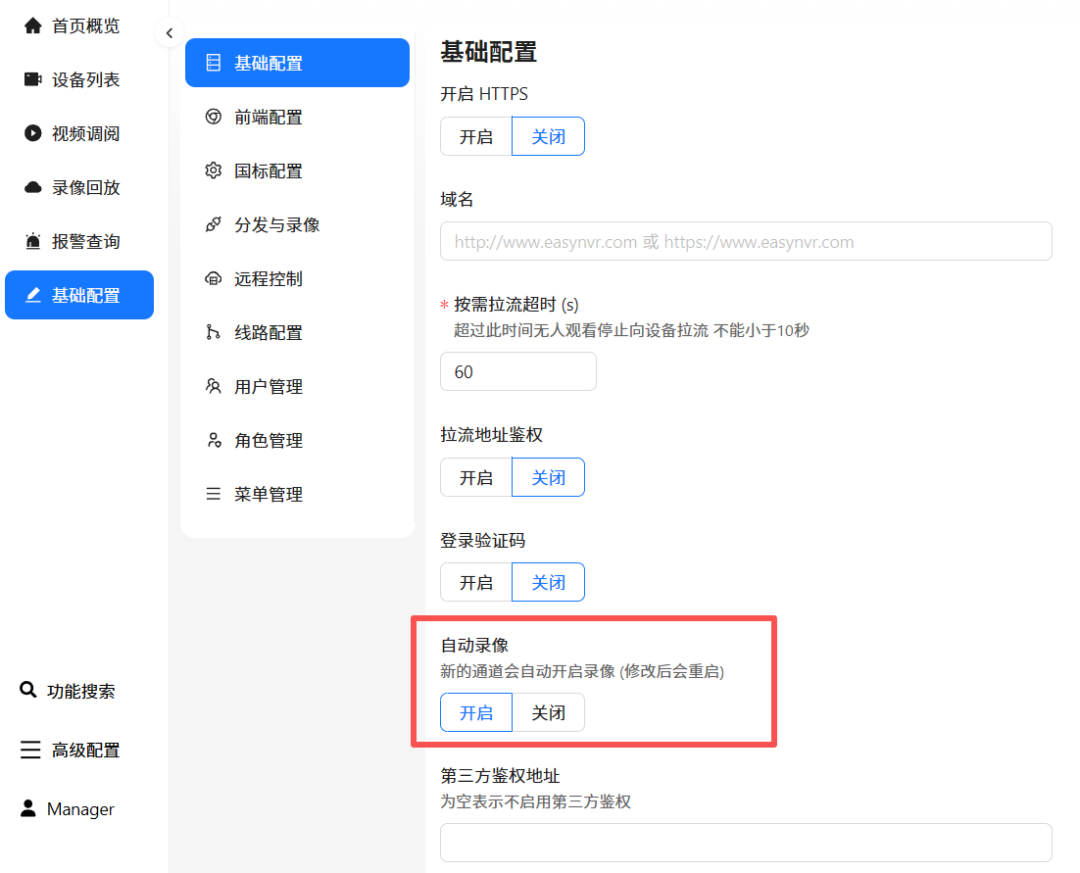 这类设备只需提前配置好 EasyNVR 平台的 SIP 信息,一旦设备开机启动,就能自动向 EasyNVR 平台推流。推流成功的瞬间,EasyNVR 会立即触发 “自动录像”,将实时画面存储在平台端,设备本身无需承担存储压力,不用担心因存储满导致录制中断。