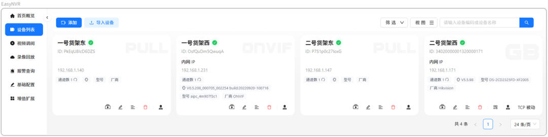 可以直接用现有的硬盘录像机做存储,再把录像机里的视频接入 EasyNVR—— 保安室既能通过 EasyNVR 实现大屏监控,实时掌握卖场各个区域的情况,又能调阅录像,不用再折腾录像机。