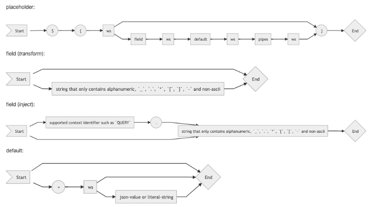 - RawString: "?query="- Placeholder:field: "some.field[0].path"default:value: ["complex", "value"]pipes:- identifier: mapparameters:- "instanceId"- identifier: sliceparameters:- 0- 10