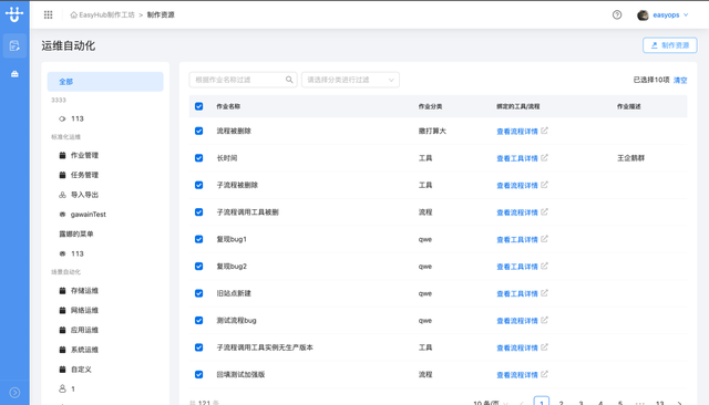 此次在产品升级上,由于交付现场积累了大量的运维场景,希望能回流至Easyops平台。为此,Hub商店支持制作运维作业资源,即一个作业资源可封装多个作业,同时封装了作业的菜单项、所使用的工具/流程信息,开箱即用,同时运维作业小产品支持Hub作业资源的离线安装。