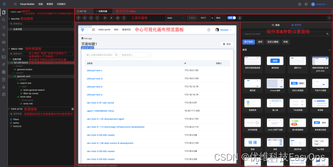 Visual Builder 是优维科技最新推出的低代码开发平台,您不需要有非常专业的技术能力,就可以使用它快速编排出属于你自己的WEB应用。通过可视化编排生产WEB应用,已经是非常成熟的一款技术方案,目前优维科技内部有超过 300 个微应用都是通过编排生产出来的,我们通过自身行动,确保了它能力的可靠!
