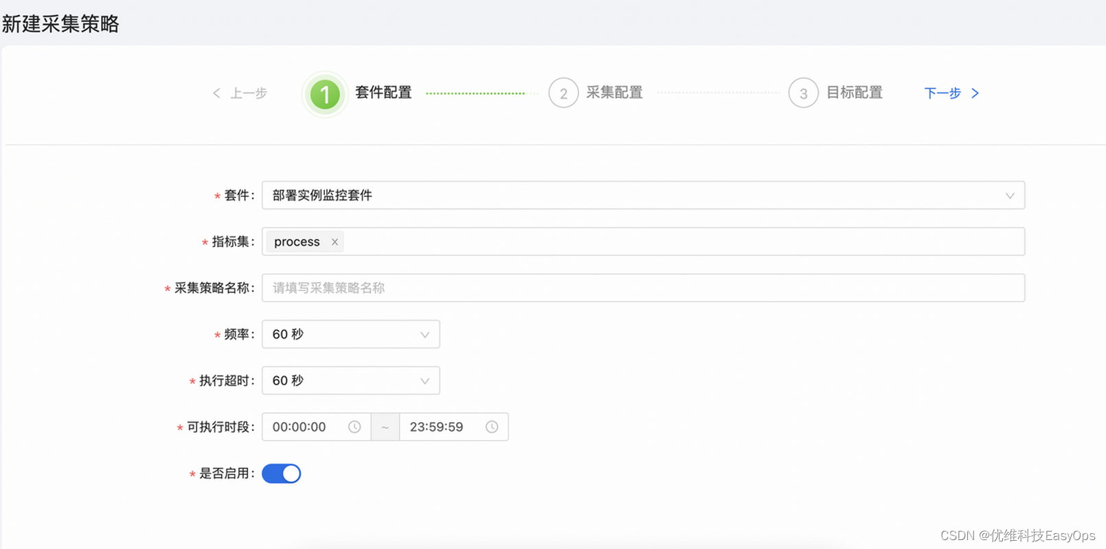 针对不同类型的监控,我们需要配置不同的采集策略。