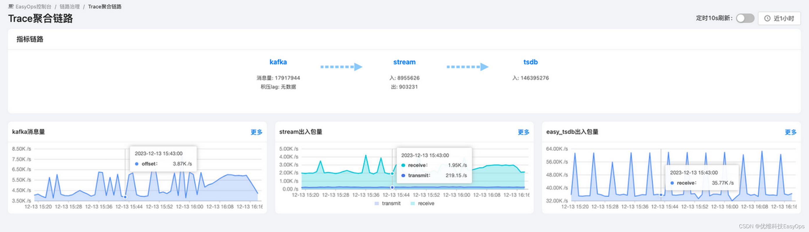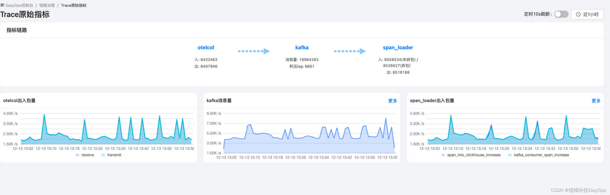 该链路是处理apm原始数据的入库的,agent (easy_trace_sampler)-->otelcol -->kafka --> span_loader --> clickhouse,当apm数据没有实时更新时可以查看该数据链路测处理情况。