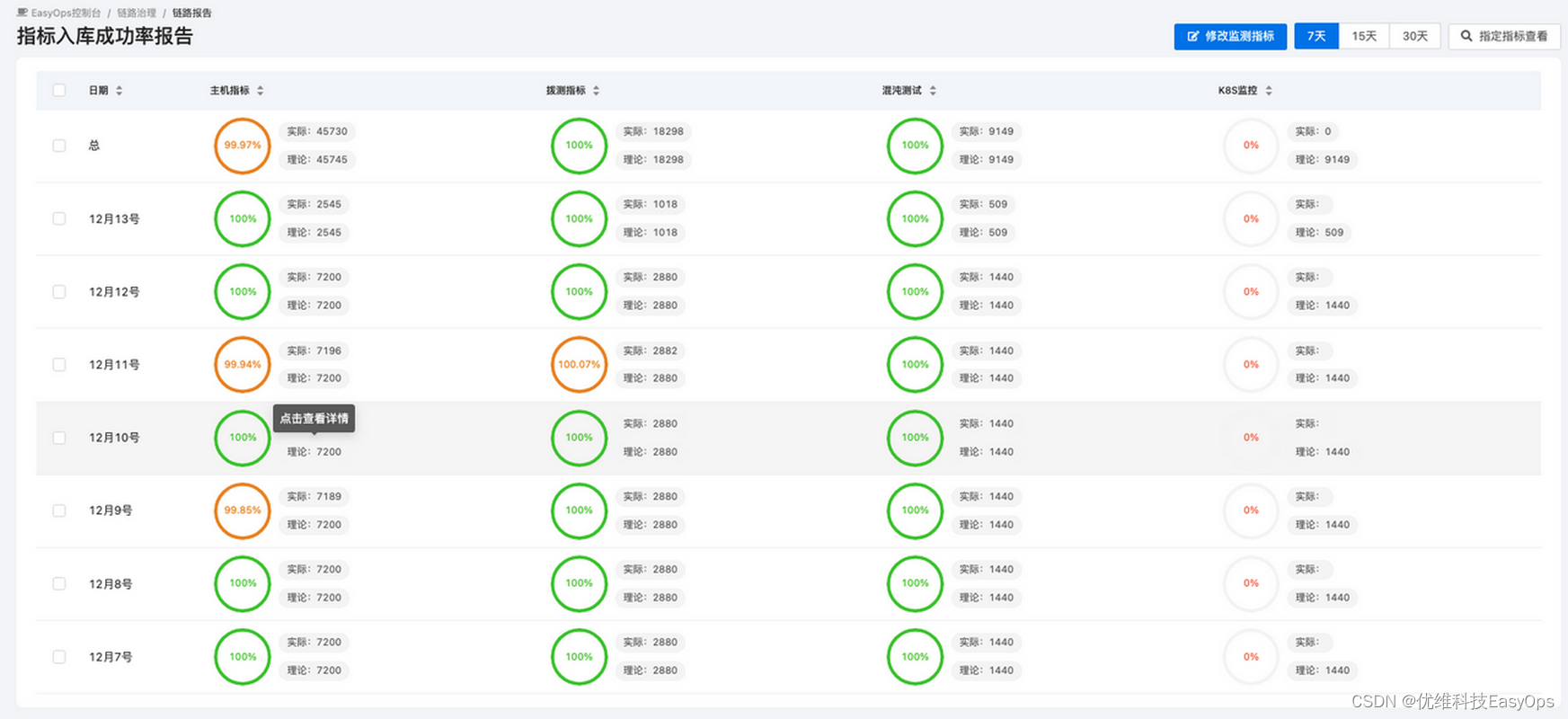 该页面主要展示一段时间内的指标入库情况,如果成功率持续呈比较低的情况,则需要针对该数据链路进行一个详细的排查。