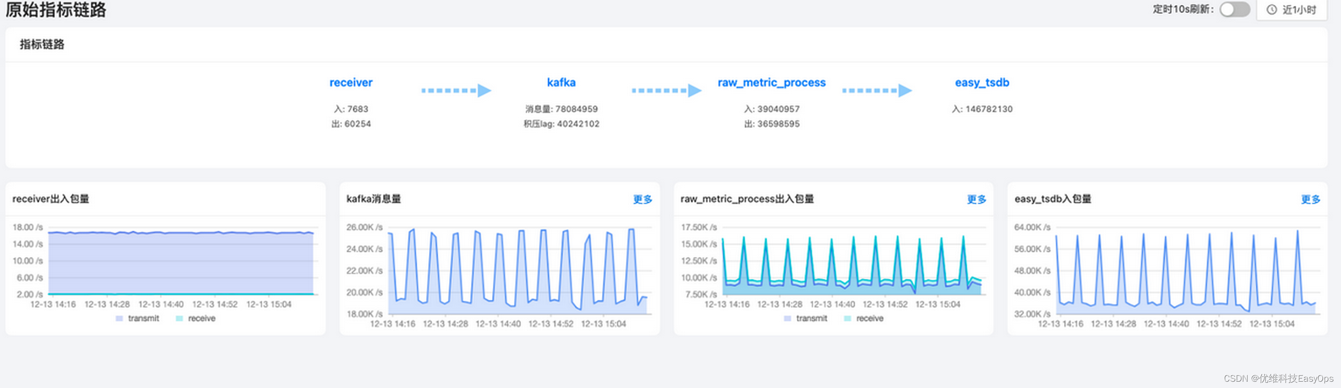 监控原始指标的上报路径为agent(easy_process_sampler)--> receiver -->kafka -->raw_metric_process --> easy_tsdb