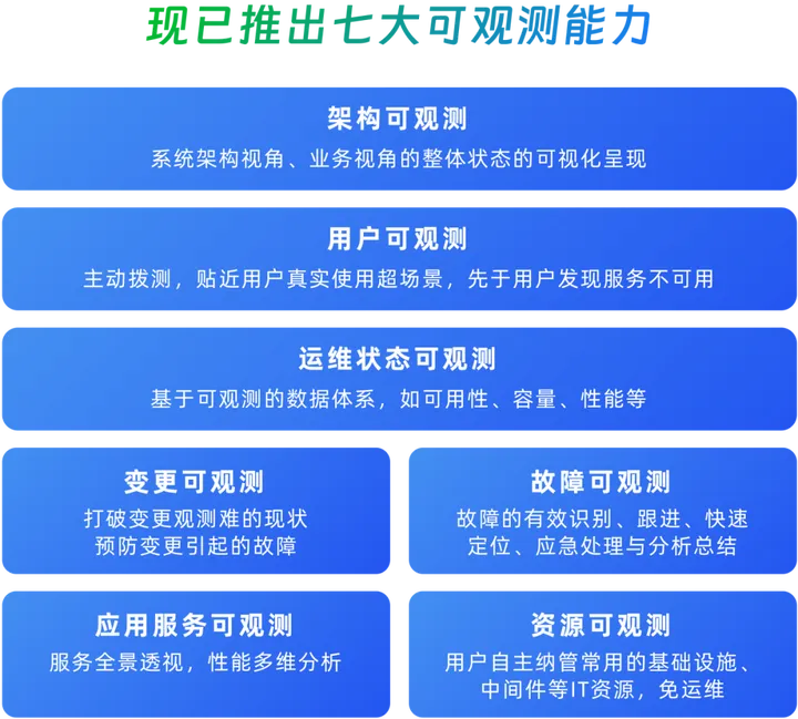 - 变更过程难以观测:生产环境中超过60%的故障来源于主动变更,业务运维难以从变更的角度观察是否给应用系统引入异常,变更活动只能“听天由命”。