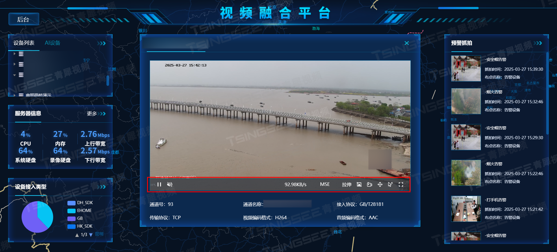 4)平台级联:可以通过GB28181协议、GA/T1400协议,实现上下级平台互联,满足大规模、跨区域的监控需求。