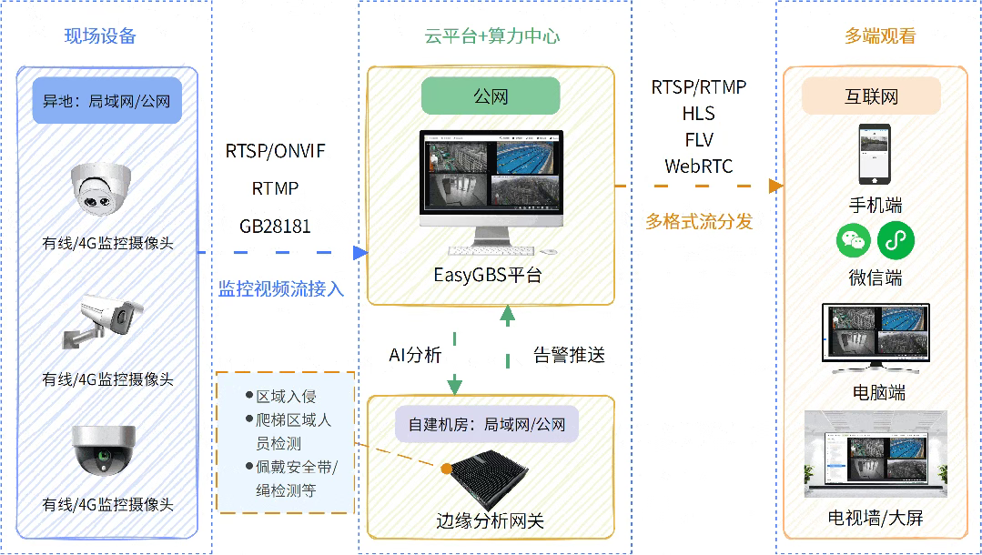 最近接到一个项目需求:“几个异地水厂的监控摄像头要统一管理起来,并且得实现智能分析。”一听这“分散管理+智能分析”的组合,我心里反而有底了——这不正好是EasyGBS平台+边缘分析网关的拿手场景吗?用“云边协同”的思路来解题,几乎是为这类场景量身定制的。