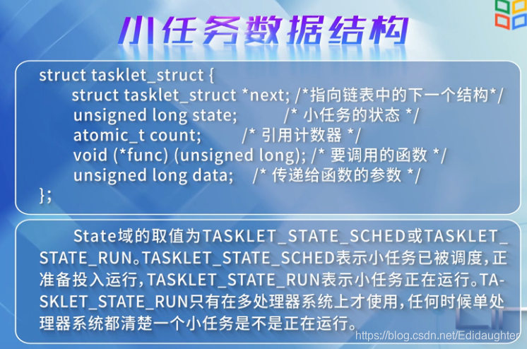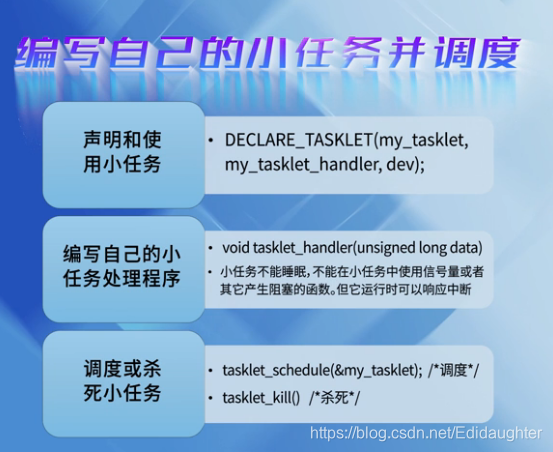 合于设备驱动程序,所谓小任务是什么意思呢?就是执行一些mini型的任务.