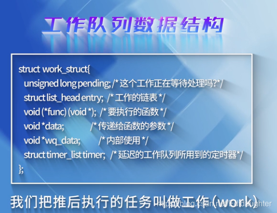 但是具体还没有可执行的任务,所以需要定义具体的work_struct对象,然后将work_struct