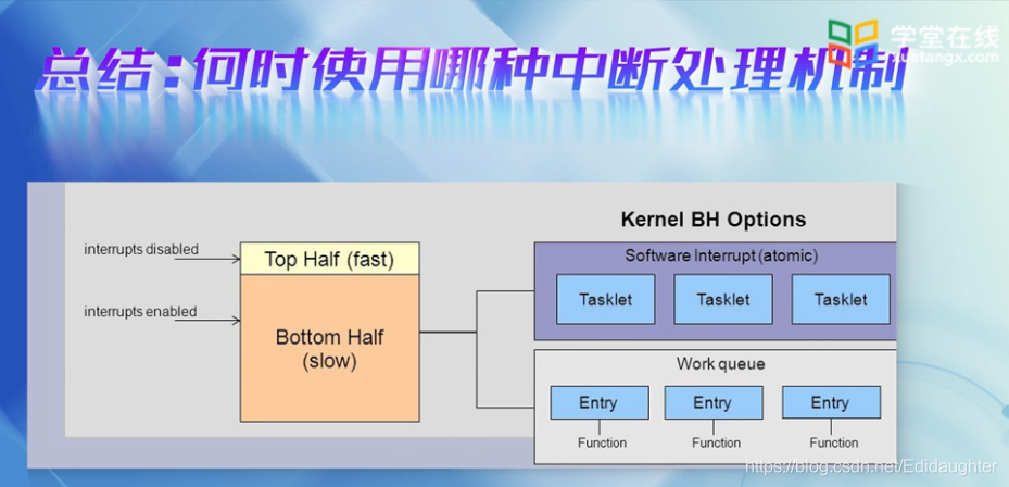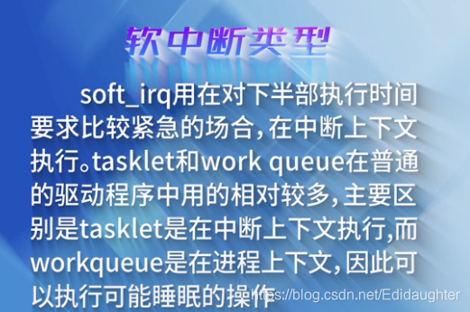 情况以外,一般都是用小任务tasklet机制,即使是下半部分,也是在做必须在中断中要做的