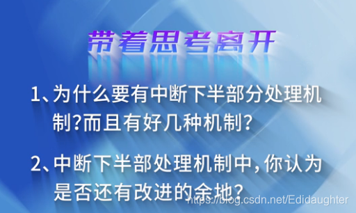 一部分是不可中断的,一个是下半部,这个是可中断的,上半部-也就是中断服务程序内核会立刻