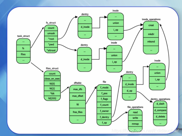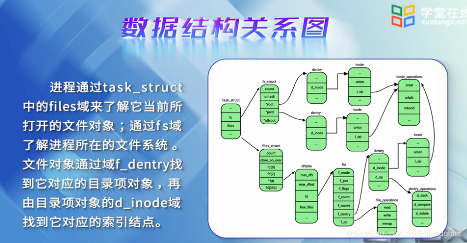 从数据结构中可以看出,文件对象是对已经打开的文件在内存中的表示,主要用于建立